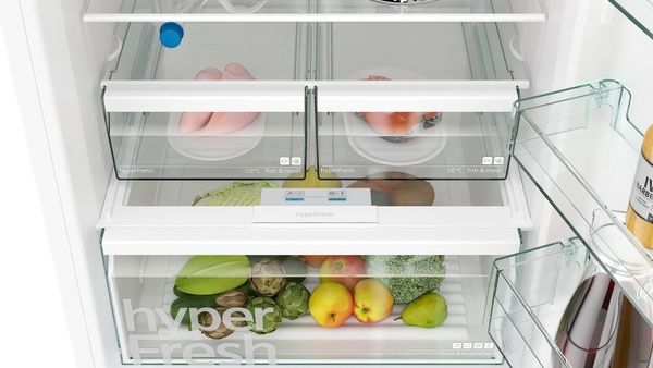 508 l toplam hacimli noFrost alttan donduruculu buzdolaplarının hyperFresh çekmecesi, meyve ve sebzelerinizin daha uzun süre taze kalmasını sağlar.